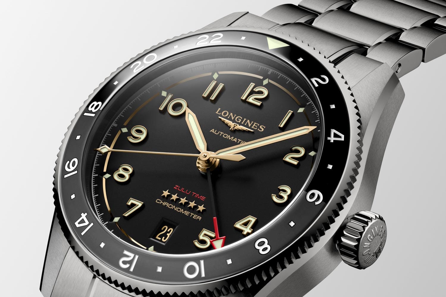De naam ‘Zulu’ verwijst naar de letter ‘Z’ die staat voor Universal Time voor piloten. Longines gebruikte dit symbool voor het eerst in 1925 op een Longines dual-time horloge. In 2022 werd het eerste horloge binnen de Longines Spirit Zulu-gepresenteerd, een model met een 42 millimeter kast. Vorig jaar werd de serie aangevuld met een 39 millimeter-uitvoering en het tijd voor een krachtige Longines Spirit Zulu Time Titanium, met een kast en band van Grade 5 titanium.