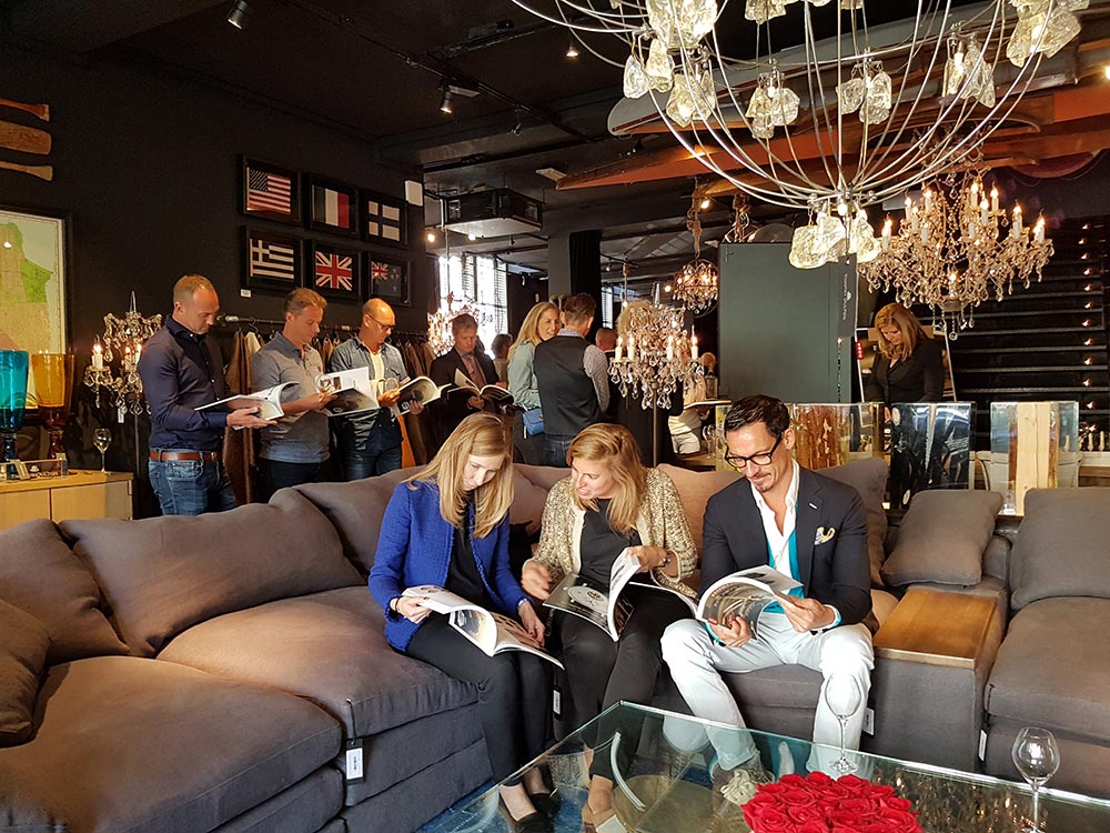 After handing out the new magazines to many of the guests were caught flipping through it while lounging comfortably in a handcrafted sofa. It was the ultimate experience; reading about traditional yet innovative watches of the highest in a magazine made with dedication, love and skills whilst sitting on a piece of Timothy Oulton furniture that shows passion for traditional handcraftsmanship with a glass of champagne close at hand. The fantastic food was taken care of by Lisa Takens of Puur Pippa.Needless to say, the launch party of the all-new 0024 Horloges was a great success.