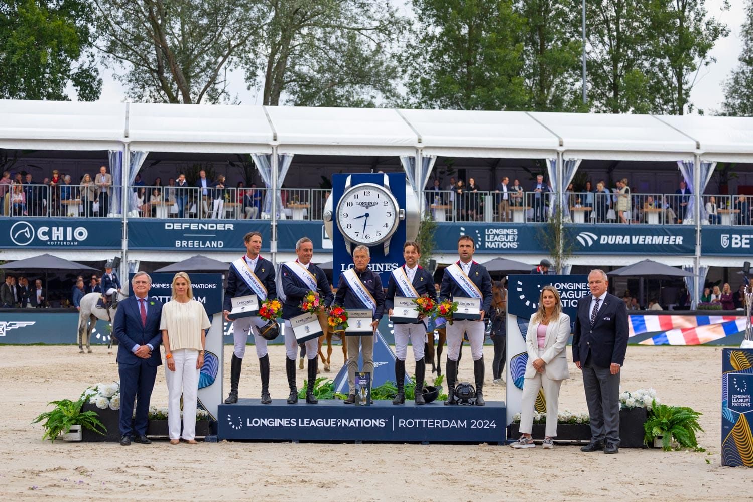 Tijdens de 75ste CHIO Rotterdam in de Longines League of Nations waren het de Franse springruiters die alle zeven ritten foutloos reden. Daarmee lieten ze zowel de Zweedse als de Britse teams achter zich en wonnen ze voor de dertiende keer in de geschiedenis van dit evenement de landenwedstrijd. Nederland eindigde op de zesde plaats. De precisie van Longines en de grandeur van CHIO Rotterdam zijn een perfecte match die de slogan ‘Jump into the future’ bevestigt, waar ook de komende decennia nog volop kan worden genoten van elegantie en competitie op topniveau.