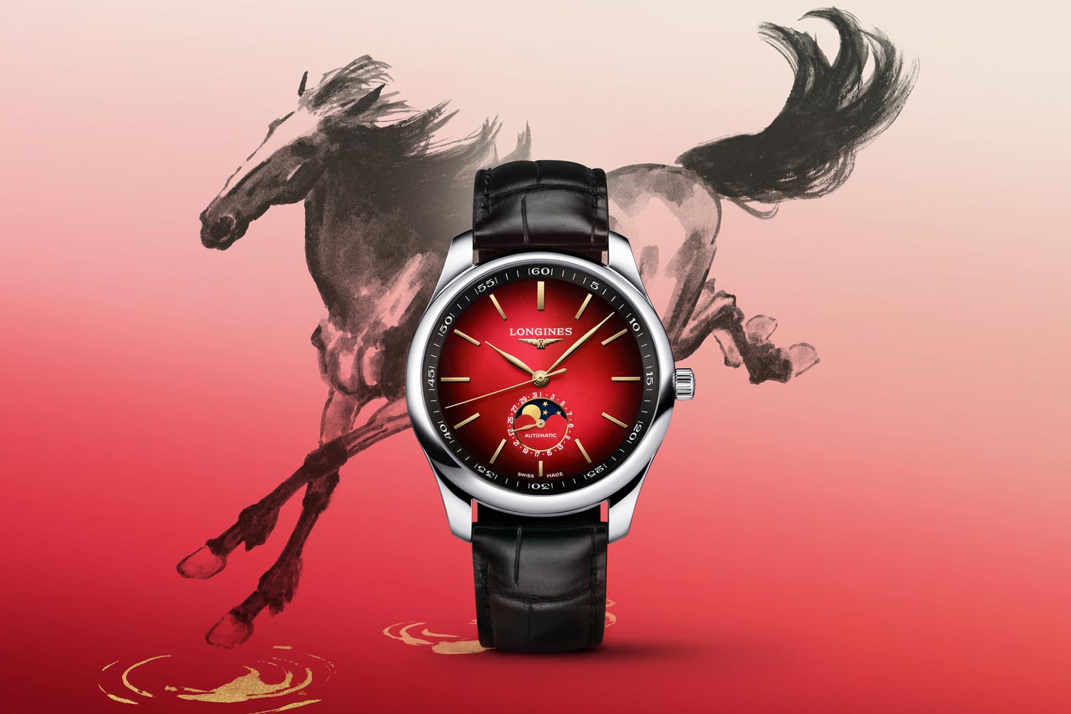 De Longines Master Collection Year of the Horse heeft een roestvrijstalen kast van 42 mm en is voorzien van een rode sunray-geborstelde wijzerplaat met een subtiel kleurverloop, die de poëtische sfeer van zonsopgang oproept, een gunstig symbool voor een nieuw begin. Elegant gevormde, vergulde wijzers en aangebrachte indexen versterken het stijlvolle uiterlijk, terwijl een maanfaseweergave op 6 uur wordt omlijst door een datumaanduiding. Het horloge wordt aangedreven door het exclusieve zelfopwindende Longines L899.5-uurwerk, uitgerust met een siliconen balansveer. Het biedt een gangreserve tot 72 uur. De Longines Master Collection Year of the Horse is wereldwijd gelimiteerd tot 2.026 exemplaren.