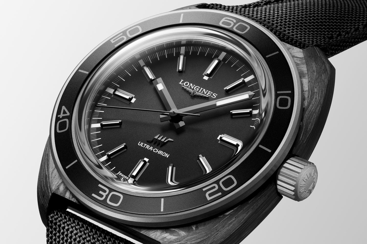 De originele Longines Ultra-Chron Diver uit 1968 was het eerste duikhorloge met een high-frequency uurwerk. In die tijd betekende dit een revolutie in de horlogewereld. High-frequency uurwerken bieden een hogere trillingsfrequentie dan de gebruikelijke 18.000 tot 21.600 trillingen per uur. Deze horlogetechnologie werd door Longines al sinds 1910 onderzocht en steeds verder geperfectioneerd. Het resultaat is uurwerken met meer precisie en stabiliteit bij schokken en veranderingen in houding tijdens het dragen. Dat het eerste Longines horloge met carbon kast wordt gepresenteerd met een high-frequency uurwerk is dan ook een logische stap in een rijke Loninges-geschiedenis om innovatie naar een hoger niveau te tillen.
