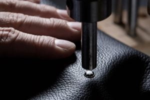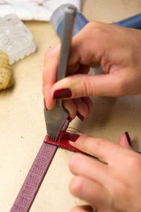 This is the department where Romanian Delia Ionescu works. She truly is a passionate leather virtuoso, and she loves watch straps. To her it is a challenge to realise a small and sophisticated ultimate artisanal creation in leather. No, she wouldn’t prefer to work on the famous Kelly bag made by the house; Delia is consumed by the finest leather handiwork. Delia and her five colleagues in the department work on the same strap from start to finish, so each strap that leaves the workshop is truly a highly personal strap right from the start. In Delia’s department the straps are glued, folded, cut, punched, stitched, sanded, scorched, pressed, painted and lacquered. It is a lengthy process that is performed with the greatest possible care. Making the tiny loops that are cut on the diagonal, fitted and measured and then stitched is a process that is as meticulous as assembling a mechanical movement.