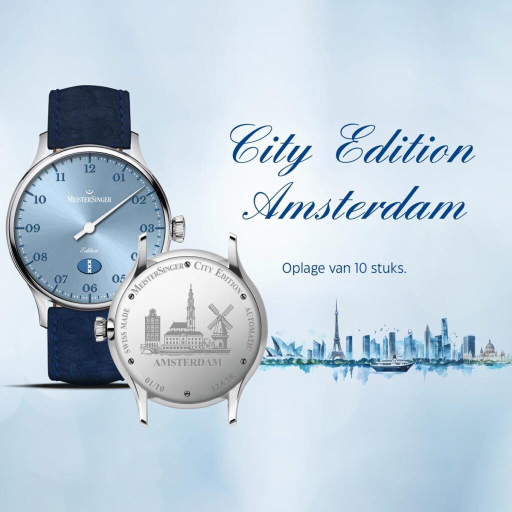 Met de nieuwe City Edition introduceert MeisterSinger niet één specifieke stad, maar een uitgebreide serie van maar liefst 47 varianten, elk gewijd aan een eigen plek met een bijzondere betekenis. Van wereldsteden als Amsterdam, Parijs en New York tot meer lokale regio’s, elke uitvoering vertelt een persoonlijk verhaal.