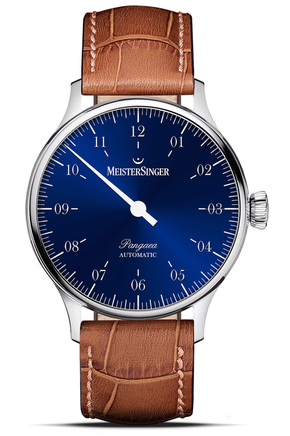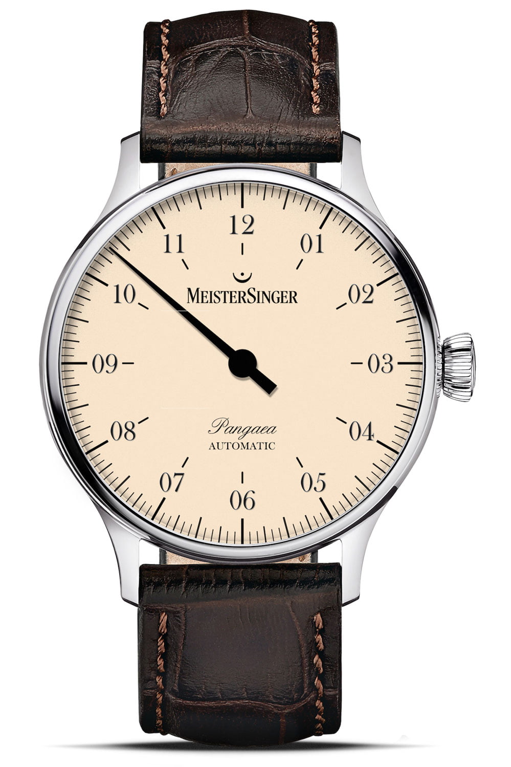 De MeisterSinger Pangaea is de nieuwste creatie van Manfred Brassler. De oprichter van het merk is ook nog steeds de ontwerper van de onmiskenbare MeisterSinger-horloges met één wijzer. Zijn belangrijkste criteria zijn: eenvoud, helderheid, evenwicht en samenhang en tot op de dag van vandaag voldoet elk horloge van zijn hand aan deze maatstaven. Al deze criteria gelden natuurlijk ook voor het nieuwe model van de Pangaea-serie. Het ontwerp mogen we gerust ingetogen noemen. Maar ook tijdloos is een aanduiding die op het model van toepassing is. De platte constructie en vloeiende kastvorm maken van de MeisterSinger Pangaea een zeer elegant horloge dat zowel geschikt is voor mannen als voor vrouwen.