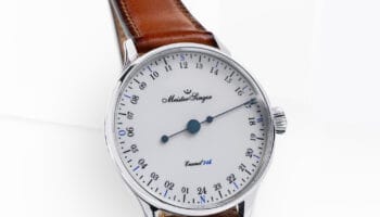 Mechanische horloges van MeisterSinger geven de tijd op traditionele wijze: met slechts één wijzer. Deze wijzer is langer en meer taps toelopend dan een conventionele uurwijzer en wijst precies naar de fijne markeringen van vijf minuten op de rand van de wijzerplaat, net als de eerste mechanische uurwerken tot in de achttiende eeuw. Moeilijk om af te lezen? Niet echt, maar wel even wennen.