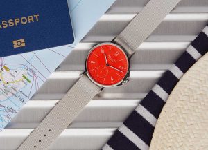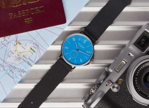 All 16 models come with a woven textile strap in blue-black or light gray, which was designed exclusively by Nomos for these watches and produced in France. While the outer side is robust enough to cope with any challenges coming its way, the finer weave on the inner side wears comfortably on the wrist.