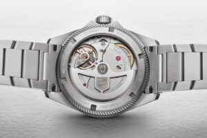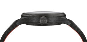 Een bijzonder aardige primeur in dit horloge is de kast, die is gemaakt van een 3d-geprinte koolstofvezel variant. De kast is 41 millimeter in doorsnee en heeft een titanium lunette en achterdeksel. Bijkomend voordeel is dat je het uurwerk kunt zien door het glazen achterdeksel.