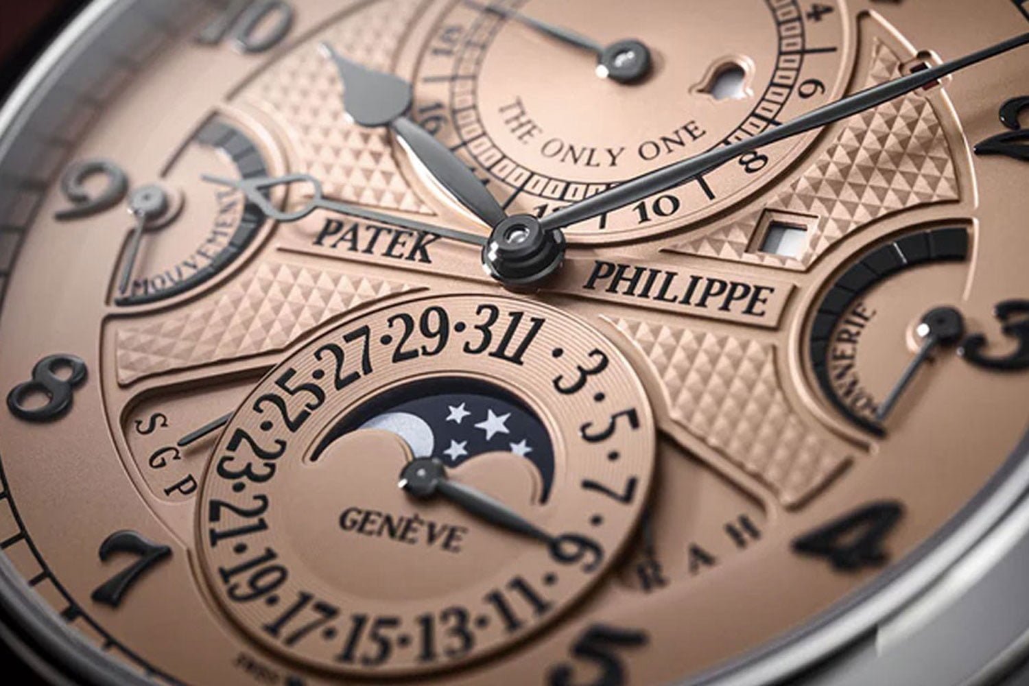 Het horloge op de veiling was een uniek stuk, de Patek Philippe Ref. 6300A-010 Grootmeester Chime. Dit is het meest gecompliceerde polshorloge ooit gemaakt, met meer dan 100.000 manuren om te ontwikkelen. Het heeft 20 verschillende complicaties. Voor deze speciale editie is de kast gemaakt van staal en de wijzerplaat van zalm.