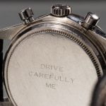 Woodward, who Newman was married to for 50 years, obviously acknowledged her husbands love for fast cars by gifting him a watch with a chronograph and even engraved the case-back with “Drive Carefully Me” in three lines.