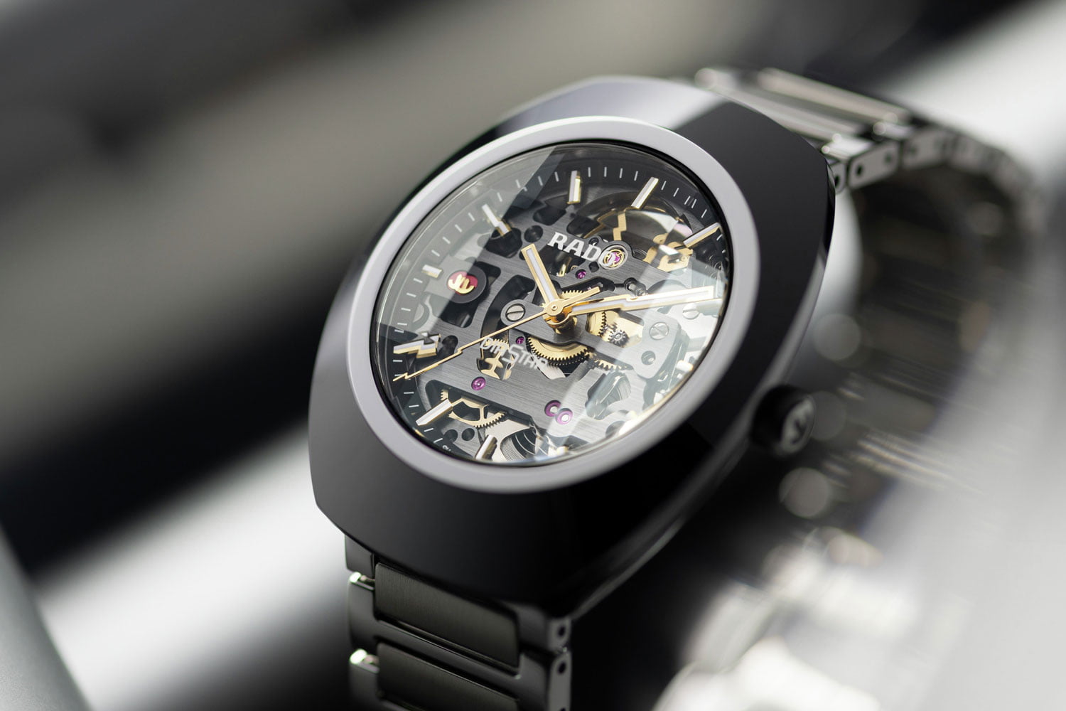 De nieuwe DiaStar Original Skeleton zet het pionierswerk en Rado’s creatieve concept ‘The Art of Skeletonisation’ voort. Zichtbaar is een skeletuurwerk als variant van het automatische kaliber R808, antracietgrijs gecoat in een aansprekend beeld van contrasten. Het uurwerk heeft een gangreserve van tachtig uur en een anti-magnetische Nivachron spiraalveer zorgt ervoor dat het uiterst nauwkeurig en betrouwbaar blijft. Dankzij de saffierkristallen vensters aan zowel de voor- als achterkant kan het automatische uurwerk aan beide zijden worden bewonderd.