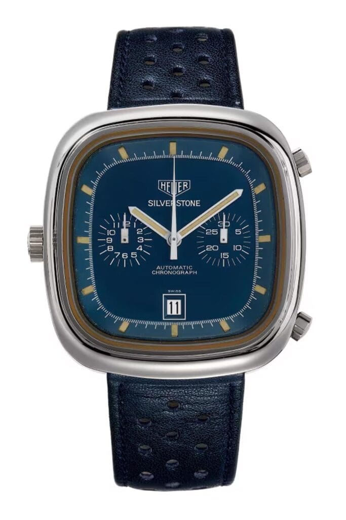 Niet het meest bekende model van Heuer, nu TAG Heuer, is de Silverstone uit 1974. Het model viert dit jaar zijn vijftigste verjaardag en verscheen vijf jaar na de release van de Heuer Monaco. De Silverstone werd ontworpen als een cleanere en meer ingetogen versie van de vier- kante Monaco. Alhoewel de Monaco anno nu nog steeds extreem populair is, was het gedurfde vierkante horloge toentertijd misschien iets té excentriek. Daarom werd de Silverstone, voorzien van een kast met ‘zachtere’ en meer afgeronde hoeken, gelanceerd. De Silverstone was de eerste Heuer-chronograaf die de naam van een racecircuit droeg. Later volgden de modellen Daytona, Monza en Jarama. In tegenstelling tot de meeste Heuer-modellen uit de jaren zeventig, hield de Silverstone het simpel: er waren drie versies met identieke kasten. Het enige dat tussen de drie modellen verschilde, was de kleur en afwerking van de wijzerplaat. De Silverstone is nog steeds een gewild en bijzonder model, maar haalt het qua populariteit bij lange na niet bij de Monaco. Anno 2024 is dat, achteraf, natuurlijk makkelijk praten!