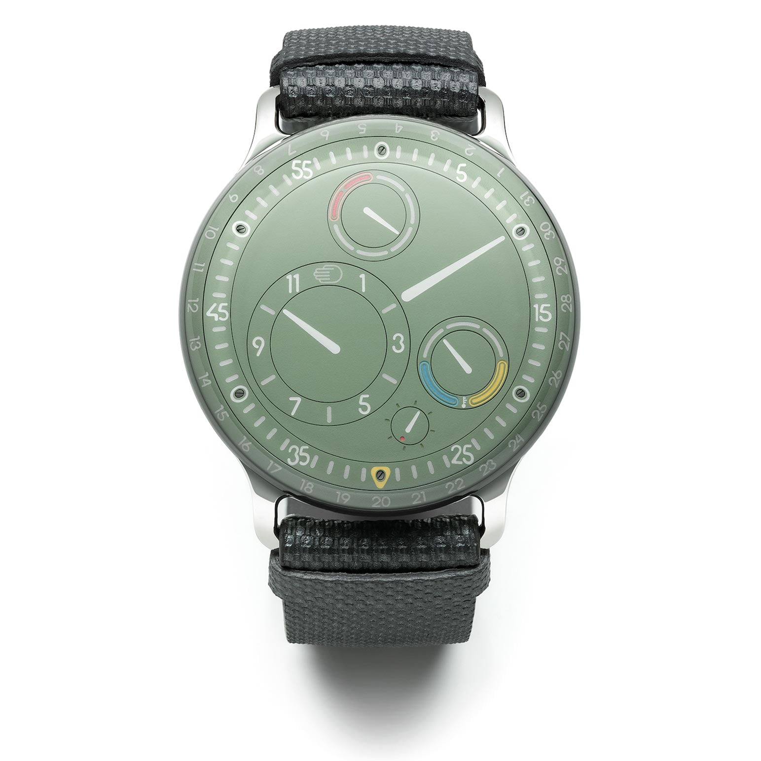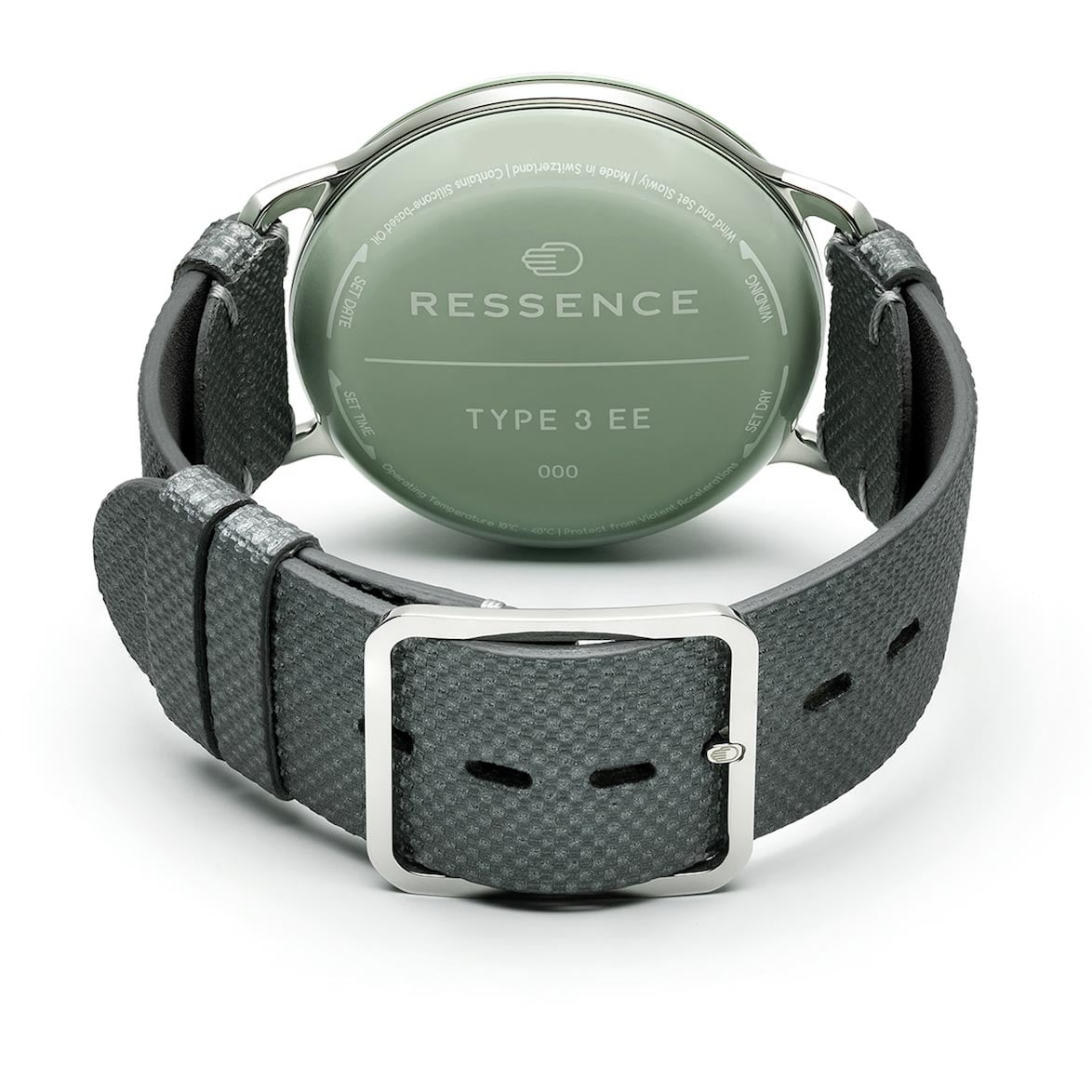 De TYPE 3 was al verkrijgbaar in zwart en wit en Ressence voegt daar met de EE dus een frisse eucalyptusgroene aan toe. “Deze nieuwe Eucalyptus Green TYPE 3 doet echt denken aan een kostbaar mineraal. Deze Ressence vasthouden en dragen komt heel dicht bij het serene gevoel dat je ervaart als je het gladde oppervlak van een gepolijste steen voelt,” aldus Ressence-oprichter Benoît Mintiens. Behalve een nieuwe kleur introduceert Ressence met de TYPE 3 EE ook andere nieuwe details. De wijzerplaat is grafisch vereenvoudigd met indexen om de twee uur. Ook de indicatie voor weekenddagen en de olietemperatuur hebben nieuwe pasteltinten gekregen.