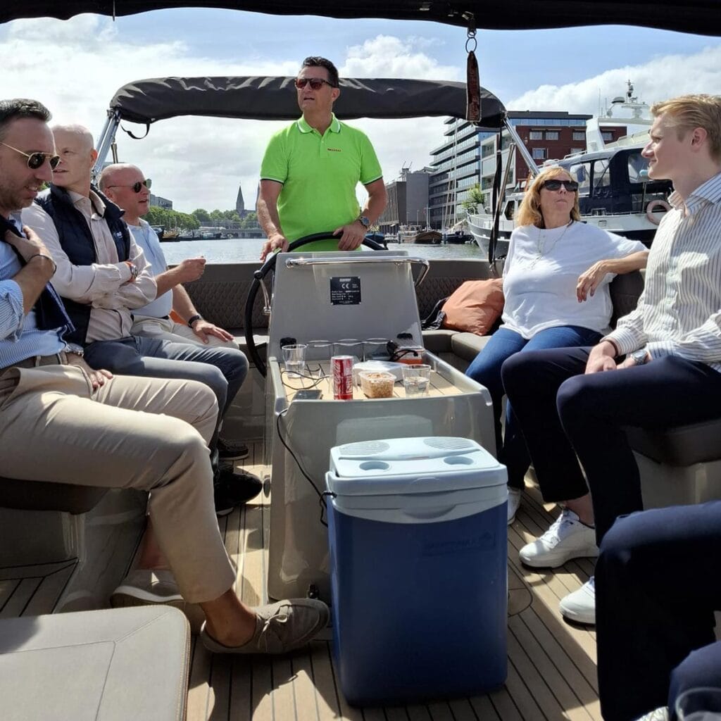 Aan boord van onze prachtige Seafury Aquanaut, met de immer rustige schipper Harry aan het roer, ontvingen we onder anderen Rens en Mick van Hamilton – het merk dat Amerikaanse durf met Zwitserse precisie combineert – Ruud Reijers van Punte Juweliers Utrecht, en Edgard Koster met partner, die het water net zo waarderen als een mooi uurwerk.