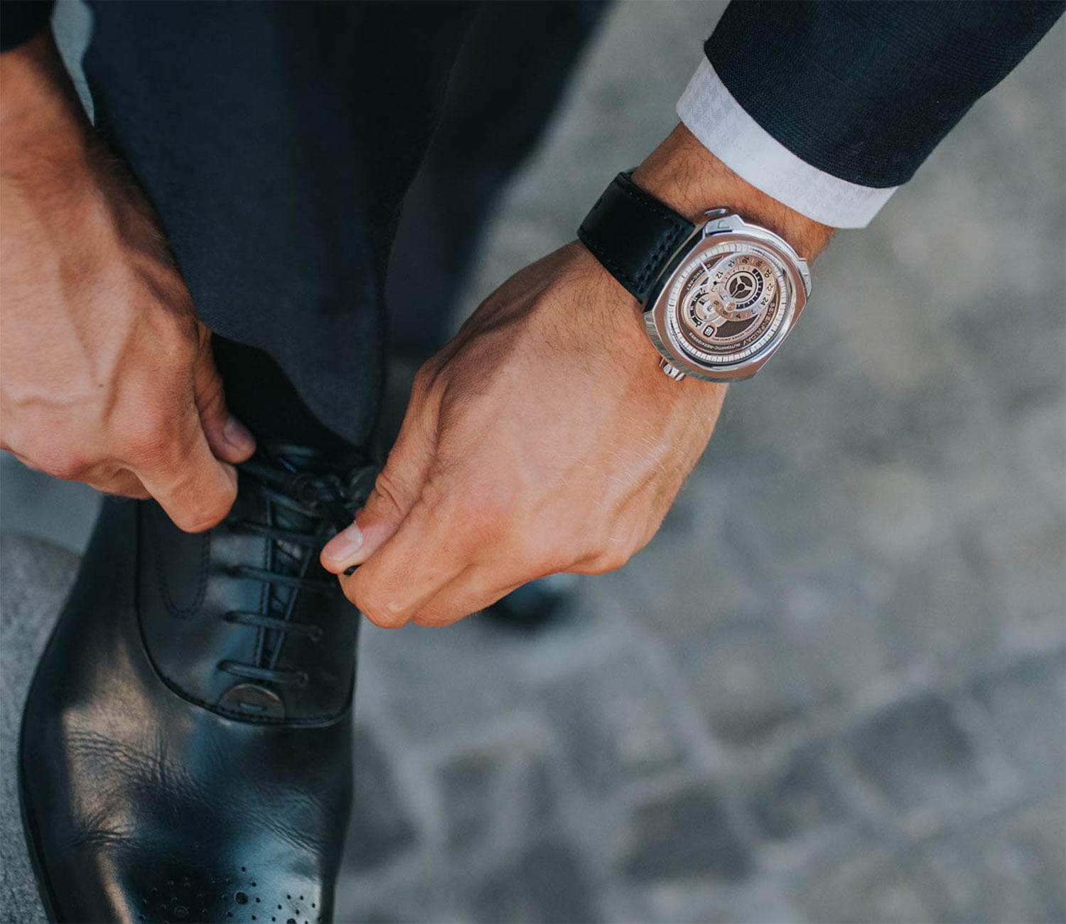 Nouvelle horlogerie at a fraction of the price. The success of SevenFriday started on the Internet, conquered the ‘real’ world of physical stores and has now become a concept that is imitated, with the use of a sound Japanese mechanical movement surrounded by a case that corresponds aesthetically with brands like MB&F, HYT, Urwerk and a number of other innovative maisons in the highest segment of the new watch wave. SevenFriday is now on its fourth wave of new models: the Q-series.