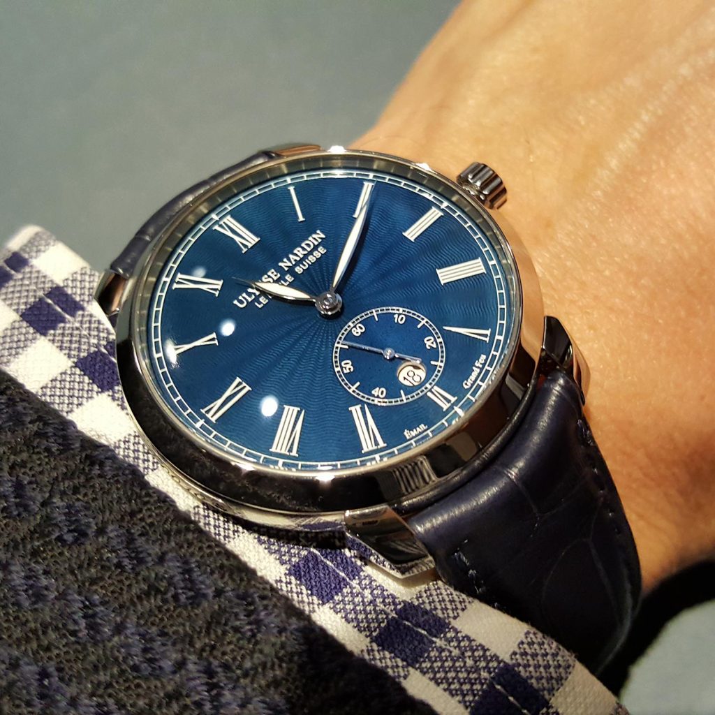 The same wow factor accompanies the Classico Grand Feu Marine Bleu. The deep blue dial with its subtle patern is rich and lively. The rounded case soft and stylish, the movement is made in-house and the price stays under 9,000 euro. Ulysse Nardin is making a very strong debut at SIHH that won’t go unnoticed by watch fans and watch manufacturers.