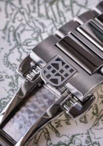 Daarnaast past de toch wat drukke stedenring heel goed in de kast dankzij het ontbreken van een lunette en het formaat. De stalen kast meet een keurige 41 millimeter in doorsnee.