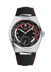 Toch is de complicatie die het horloge het beste past nog altijd de world timer. Ten eerste omdat deze complicatie een van de eerste gecompliceerde kalibers was die door Frederique Constant zelf ontwikkeld werd, maar ook omdat het thema van reizen goed past bij het stadse en moderne karakter van het horloge.