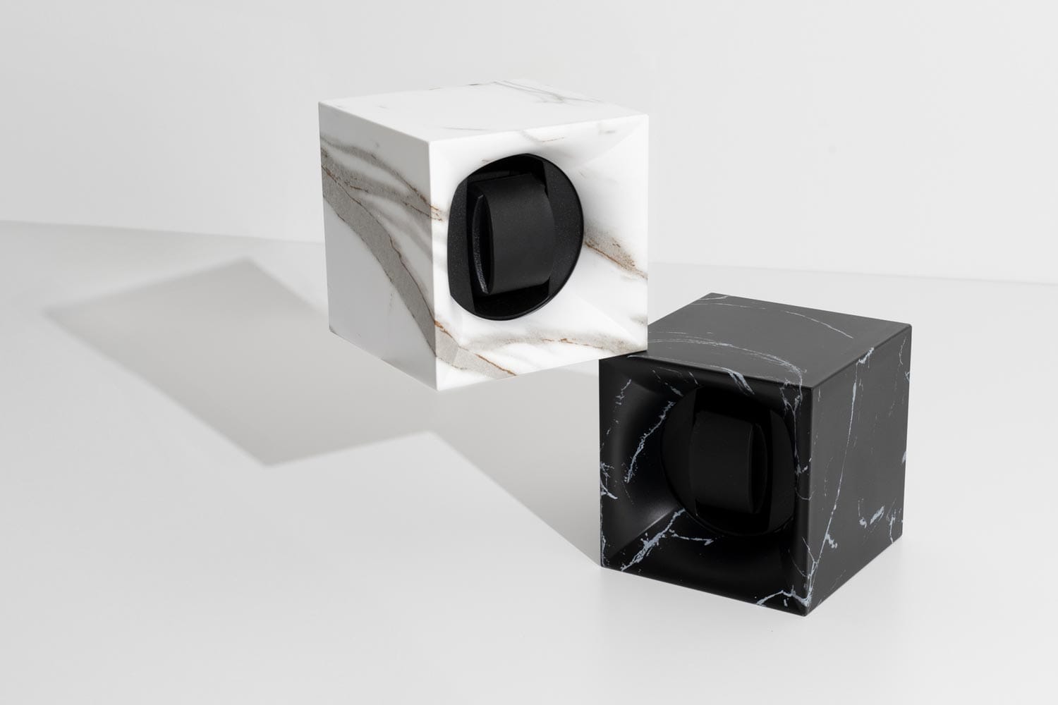 De Startbox Metamorphik is verkrijgbaar in twee verfijnde kleuren: het stralende Carrara White en het diepe Marquina Black. Dankzij het handgemaakte productieproces krijgt elke watchwinder een unieke uitstraling, waardoor je altijd iets exclusiefs in handen hebt.