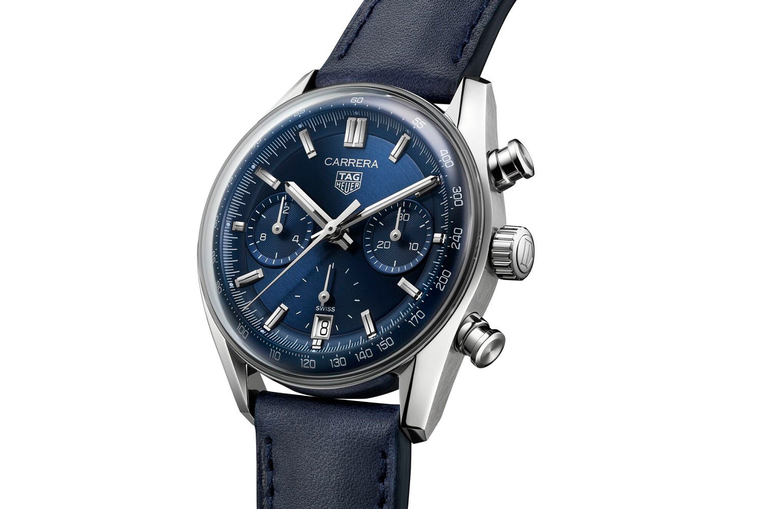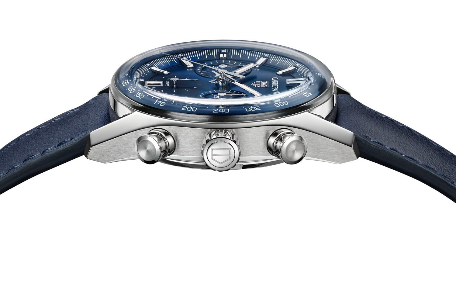 De twee nieuwe TAG Heuer Carrera Glassbox 39 mm chronografen hebben, afhankelijk van het model, een blauwe of zwarte wijzerplaat. Het blauwe model wordt gecombineerd met een blauwe kalfslederen band. Het zwarte model heeft een zwart-zilveren reverse panda-wijzerplaat. Dit is een duidelijke verwijzing naar de jaren 60 Carrera’s. Bijvoorbeeld naar de collectors items 3147 Dato 12, de eerste Heuer Carrera met chronograaf- en kalenderfuncties en de zeldzame jaren 60 Carrera 2447 NS.