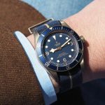 This Heritage Black Bay Bronze Blue is powered by the mechanical caliber MT5601, an iteration of the caliber developed by the company’s watchmakers and released in 2015. No one at the time thought that Tudor would be developing a caliber designed and manufactured in-house. This manually-wound movement beats at 4 Hertz –or 28,800 vph – and is regulated by an oscillator with variable inertia and a silicon balance spring. It has a power reserve of 70 hours. And, finally, its accuracy is guaranteed by a series of tests performed over a period of fifteen days by the notorious Swiss Official Chronometer Testing Institute (COSC).