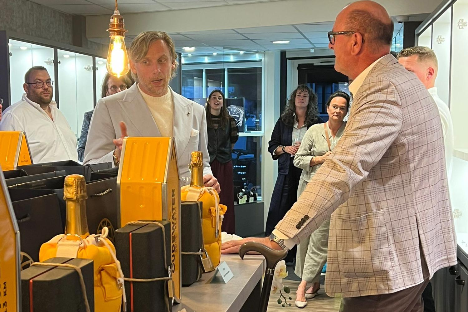 John van Steen, de man die MeisterSinger in Nederland draaiende houdt als een precisieklokje, was uiteraard van de partij. De gepersonaliseerde flessen Veuve Clicquot zorgden ervoor dat men zelfs zonder horloge wist dat het ‘tijd voor champagne’ was.