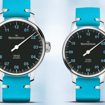 MeisterSinger klassieker №03 geeft in een gelimiteerde zwart met helder blauwe uitgave een extra zomers uiterlijk aan een van zijn iconen. Daarnaast introduceert het merk dit jaar, naast de 43 mm versie van de №03,