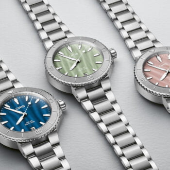 Op de Geneva Watch Days 2022 introduceert Oris een nieuw trio van Aquis Date 36,5 mm-modellen met parelmoeren wijzerplaten in stijlvolle natuurlijke kleuren. Het Zwitserse horlogemerk Oris introduceert de bekende duiker Aquis in een bijzonder
