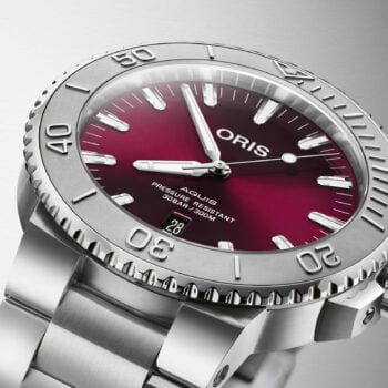 Goed, helemaal nieuw is het idee niet; vorig jaar introduceerde zagen we al de Oris Aquis 41 met een kersenrode wijzerplaat en een stalen kast. Maar die had een diameter van 41,5 millimeter. Ref. 01