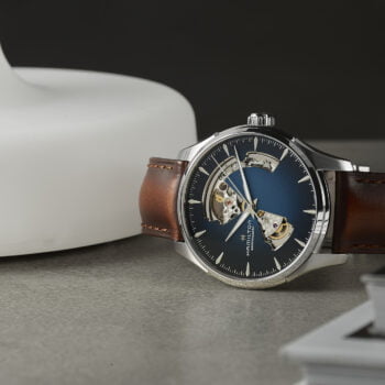 Een opengewerkt design, wijzerplaten met kleurverloop en een leren band met patina-look: de Hamilton Jazzmaster Open Heart Automatic is niet zomaar een gekleed horloge. Het is een modern staaltje horlogevakmanschap van het Amerikaans-Zwitserse merk. De