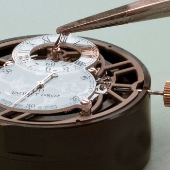 Jaquet Droz Grande Seconde Skelet-One For the first time Jaquet Droz reveals the mechanical heart of the Grande Seconde. Staying true in all aspects to the original inspiration of the Grande Seconde, this new interpretation