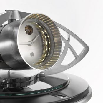 Tick-tock. Tick-tock. The rhythmic swing of the long pendulum paired with the steady tempo of the Time Machine mechanism fills the air with harmonic sounds – a melody orchestrated and invented by artisan Florian Schlumpf.