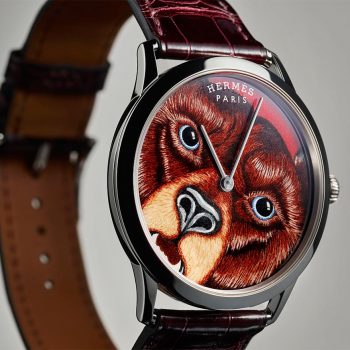 Scare me, Hermès! Because time is a game and watchmaking is mischievous for those capable of looking beyond the outdated use of amazing expertise. It took a special mindset to imagine this unusual encounter between a gruff bear and the delicate technique of miniature enamel painting. Here's the Slim d'Hermès GRRRRR !