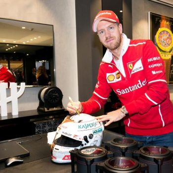Loic Biver, Hublot General Manager of Greater China, celebrated the Big Bang Ferrari collection launch in China as well as the grand opening of the renovated Hublot boutique at Shanghai Plaza 66, with Sebastian Vettel, F1 world champion.