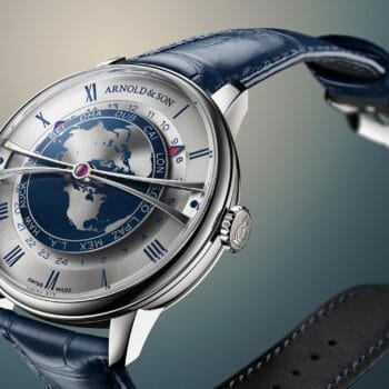 Strand Blue en Greenwich Green in een slanker jasje Een eerbetoon aan de reiziger van toen én nu. Arnold & Son blaast zijn iconische Globetrotter nieuw leven in met een slankere, compactere uitvoering: de Globetrotter