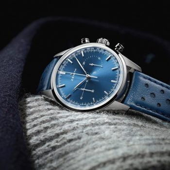 ‘Look mom, no date!’ The Heritage 146 is a re-interpretation of one of Zenith’s historic 1960s models. The 38mm case is delightfully slender and the absence of a date keeps the dial refreshingly clean. A great new El Primero-equipped chronograph in blue or brown.