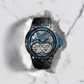 Rubber straps that mimic racing tyres. We've seen that countless times. So did Roger Dubuis and that's why the Genevan maison now presents the Excalibur Spider Pirelli collection. Both the Double Flying Tourbillon and the Automatic Skeleton are fitted with a rubber strap that is made from authentic Pirelli F1 tyres! A world's first!