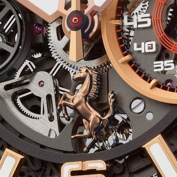 The new Big Bang Ferrari is not a facelift of the existing models, but a completely new watch. Aesthetically speaking Hublot has tried to meld together the design facets of the sports car with the prancing horse and those of the angular watch as much as possible.