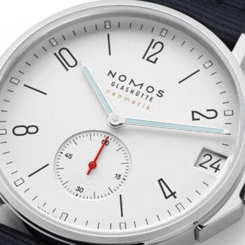 Mechanisch vakmanschap voor wie stijl en sportiviteit wil combineren Een helder wit horloge dat net zo onmisbaar is als een klassiek Wimbledon-tenue of een witte zeil op de horizon: de nieuwe Ahoi neomatik 38 date