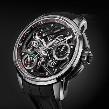 Built like a supercar, the Angelus U30 Tourbillon Rattrapante unites three coveted "haute horlogerie" complications in a contemporary, three-dimensional form that is unlike any other: the tourbillon, fly-back double column wheel chronograph and split-seconds (rattrapante), while also boasting automatic winding with a power reserve display.