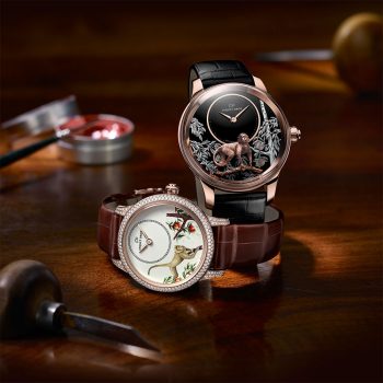 Ulysse Nardin honors the monkey with the Cheerful Year of the Monkey timepiece, the latest addition to its Classico Collection. The dial is designed in a comic book-like style to best capture the lively character of the monkey who appears to leap through a brush of palm fronds. His expression is alert, his body lithe and the early workings of an impish grin begin to emerge.