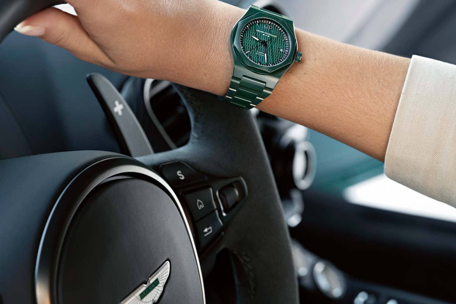 En laten we wel zijn, soms pakt dat verhaal prachtig uit. Zo zullen ze bij Girard-Perregaux afgelopen weken handenwrijvend hebben toegekeken hoe Fernando Alonso zijn Aston Martin al twee keer naar het F1-podium reed, precies op het moment dat de Laureato Green Ceramic Aston Martin Edition op de planning stond om te introduceren. ‘Uitmuntendheid in design, materialen en vakmanschap’ zijn volgens het ronkende persbericht gedeelde waarden van de twee identiteiten, daar kan de volgende keer wellicht nog het kopje ‘prestatiegericht’ aan toegevoegd worden.